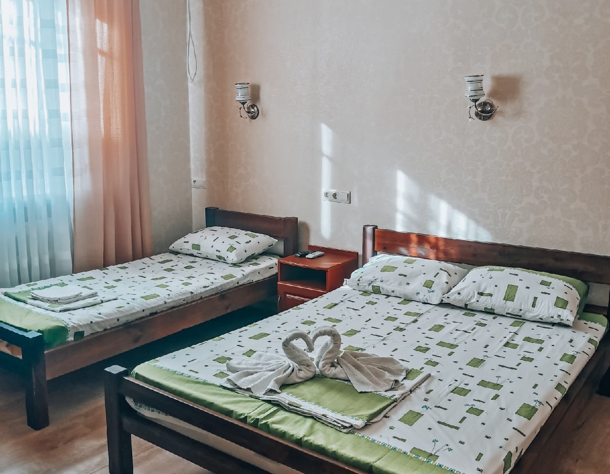 Номерной фонд состоит из 2-4-местных номеров со всеми удобствами: телевизор, холодильник, кондиционер и собственный санузел. Есть семейные номера с кухней.